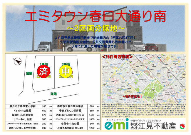 お知らせ 2026.02.23 エミタウン春日大通南2号地お申し込みを頂きました^^ お客様より若葉台西2号地のお申し込みを頂きました!誠に有難うございますm(_ _)m春日市若葉台西分譲地につきましては完売間近となりますが、その他土地情報も多数ございますのでお家づくりの基礎となる土地をお探しの際はぜひ一度、江見不動産までご相談ください! PDF資料はこちら