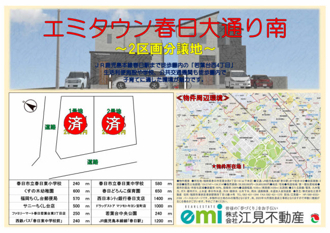 お知らせ 2026.04.11 エミタウン春日大通り南完売! エミタウン若葉台西分譲地ご好評につき完売いたしました!ご協力いただきました皆様誠に有難うございます♪これからお客様の素敵なお家が出来るのも楽しみにしております♪その他にも当社物件ございますのでお気軽にお問い合わせください。 PDF資料はこちら